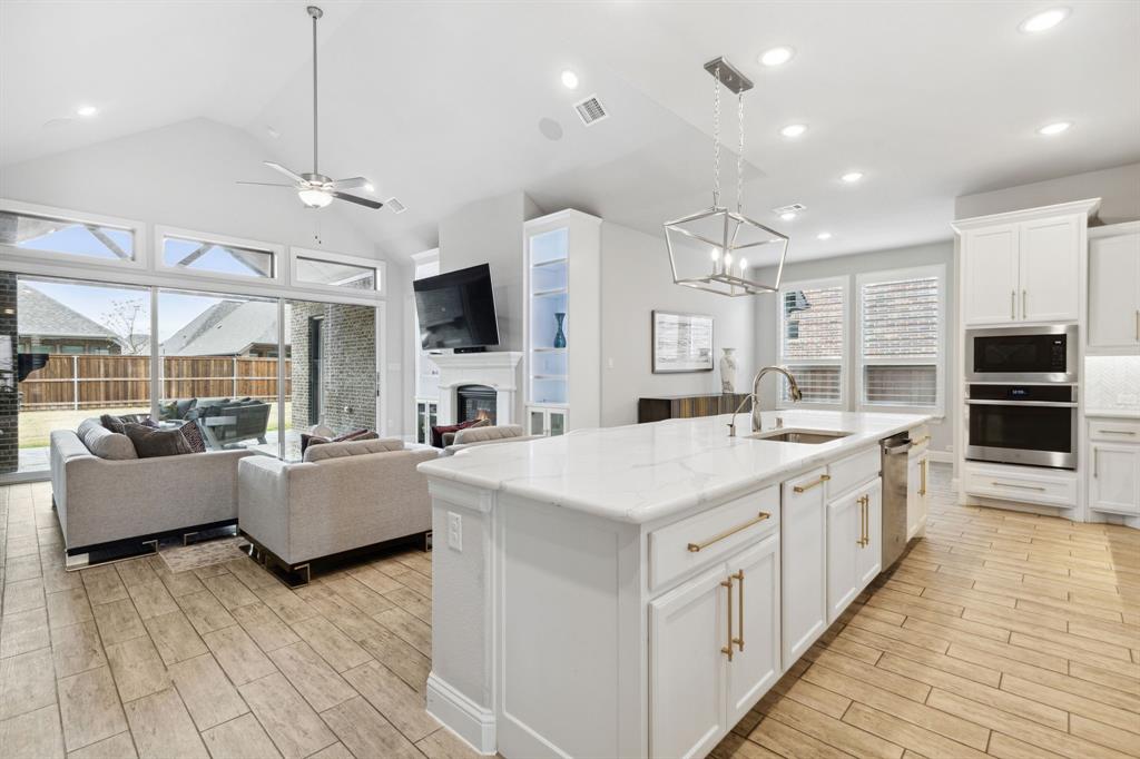 Better-than-new, upgraded and meticulously maintained 4 bed, 3 bath in McKinney’s coveted Trinity Falls. Step inside to find over 2,700 sq ft of comfortable, open, well-appointed living spaces. This ideal home has beautiful flooring, vaulted ceilings, custom shutters, stylish and functional built-ins, decorative lighting, ceiling fans and neutral paint throughout. Kitchen + breakfast room with walk-in pantry, large island, and gas cooktop are open to family room with cozy fireplace and walls of windows with lots of natural light and backyard views. You will enjoy an outdoor living area with fireplace, built-in grill, custom wood awning + electric shade for year-round enjoyment. Large owner’s suite and true spa bath has walk-in shower, double vanities, garden tub. Study is perfect for working from home. Guest bedroom with ensuite bath. Gameroom ideally located between 2 additional beds + full bath. Community pool, splash pad, clubhouse, pavilion, multiple playgrounds, a dog park + more!