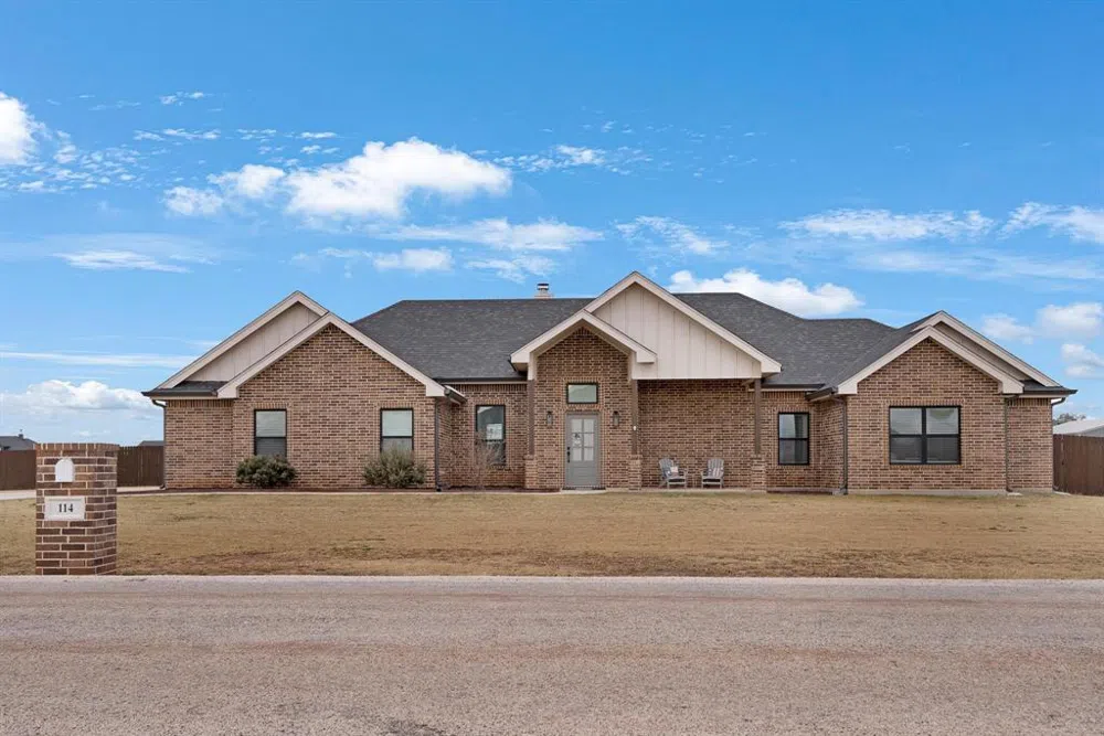 Discover this elegant very spacious home nestled within the sought-after Jim Ned School District, outside city limits with boundless West Texas views. This property offers a perfect blend of modern style and rustic charm. The heart of the home features an open floor plan, seamlessly connecting two inviting living rooms ideal for relaxing or entertaining. Curl up to the stone fireplace on those cold days in main living room or set up game room in second living room. Love to entertain? You will love the open and large kitchen with tall ceilings. If you want a primary bedroom retreat, its locate on its own side of the house, with spacious ensuite bathroom and walk in closet. The additional bedrooms are generously sized, catering to various lifestyle needs. There are 3 full baths, ensuring comfort and convenience. Two of the guest bedrooms share a jack and jill bathroom. Tall windows let in lots of natural light throughout. Situated on a flat 1-acre fenced lot, the property offers ample outdoor space for recreation or landscaping needs such as a pool and shop. This home's blend of functionality and aesthetics creates a modern farmhouse feel, sure to captivate.