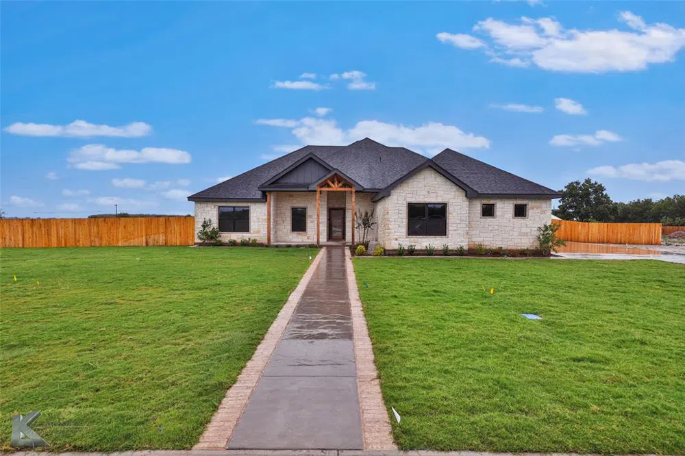 Come be apart of Jim Ned's newest subdivision, Wild Horse Trails. This home will offer and open floor plan featuring 4 bedrooms and 2.5 baths.Step into the spacious living room adorned with an impressive 11-foot ceiling, which also has an inviting electric fireplace, perfect for cozy gatherings or quiet evenings in.This home boasts spray foam insulation, ensuring energy efficiency and year-round comfort. The chef-inspired kitchen is a culinary dream, featuring sleek stainless steel appliances, with level 2 granite countertops that provide ample space for meal preparation and entertaining.Indulge in the convenience of a walk-in pantry, offering abundant storage for all your essentials. Retreat to the master suite, complete with a lavish ensuite bathroom and generous closet space. Three additional bedrooms provide versatility for guests, home offices, or hobbies. The exterior home the home will include a 6 ft privacy fence as well as irrigation and sod in BOTH the front and backyards