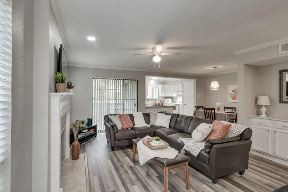 Ground level charming townhome condo in Dallas off Preston and Belt Line. Enjoy a single level unit with 1-bedroom 1-bathroom and open concept living. This is pretty, furnished home with a comfy king bed, dresser, nightstands, sectional, dining room set, washer, dryer, refrigerator, wall decor, kitchen utensils, and all the soft furnishings like rugs and towels - if you want a turnkey move in situation or can be made available without the furnishings. There is 1 designated parking space directly in front of the unit. There are other guest spaces approximately 10 spaces away. The amenities, pool, spa, bbq area, gazebos, lounge chairs, usps mail, trash are all a very short distance away. We have 2 homes available in this area. Both 1-bed 1-bath priced the same with furnishings. One is upstairs and one is downstairs. They are currently longer stay airbnb homes with guests bringing in over 2200 a month this fall-winter. This is close to DNT 635 I-75 arts, entertainment, hospitals, and bustling N Dallas economy. To show these guest occupied units we do require proof of cash funds or proof of financing. Seller financing is not an option here: only cash, conventional.