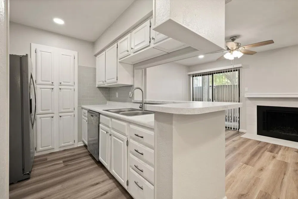 PRICE GREATLY IMPROVED! NOW SELLING AS-IS. Spotless 1-bedroom condo located in the beautiful Cloisters gated community. This first floor unit offers many amenities including a wood-burning fireplace, stainless steel appliances, spacious closet in the bedroom. Refrigerator and stackable washer and dryer stay with the home. Enjoy your private patio with storage room and all The Cloisters has to offer including 3 swimming pools, tennis courts, exercise area and sauna. The recreation area offers game tables and a racquetball court. Convenient access to I-30, shopping, dining, Globe Life Park, ATT Stadium, Six Flags and Hurricane Harbor.