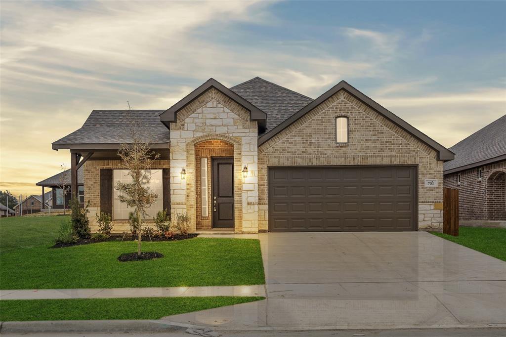 MLS# 20245558 - Built by Antares Homes - Ready Now! ~ Covered Patio! Formal Dining Room! Wood Look Tile Flooring! Flex Room! If you're looking for a one-story dream home, then look no further. This three-bedroom beauty has all the bells and whistles to make your home uniquely yours. The kitchen is where all the action happens, designed with all the fine touches - granite countertops, white cabinets, and stainless steel appliances - to elevate your culinary game. Modern amenities like a luxurious master suite comfort await you with plenty of windows for gazing into your peaceful yard during sunrise, twin sinks and a soaking tub for unwinding after a long day, and a walk-in shower coupled with a spacious closet for organizing your wardrobe. Not to worry about space either – two bedrooms provide additional amenities and access to the full bath and utility room.