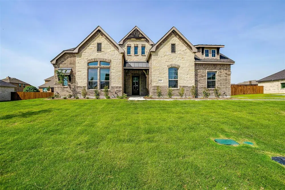 NEW JOHN HOUSTON HOME IN BRYSON MANOR IN MIDLOTHIAN ISD. This lovely open concept home features a separate formal dining room, seamless transition from kitchen to family, powder bath for guests, oversized pantry, and master bedroom bay window. It includes 8 foot interior doors, wood floors in all main living areas, wood wrapped island, custom painted cabinets to the ceiling, and upgraded countertops, carpet and tile. Ready Mid April 2023.