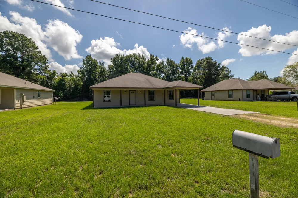 Energy efficient home in the Tarkington school district. Within walking district to the schools, this home features a carport, large open concept living-dining-kitchen area, stained concrete floors, large closets, convenient layout of bedrooms, covered back patio and outside storage room. Washer and dryer hook ups provided in utility room conveniently located right off the kitchen. Measurements are approximate.
