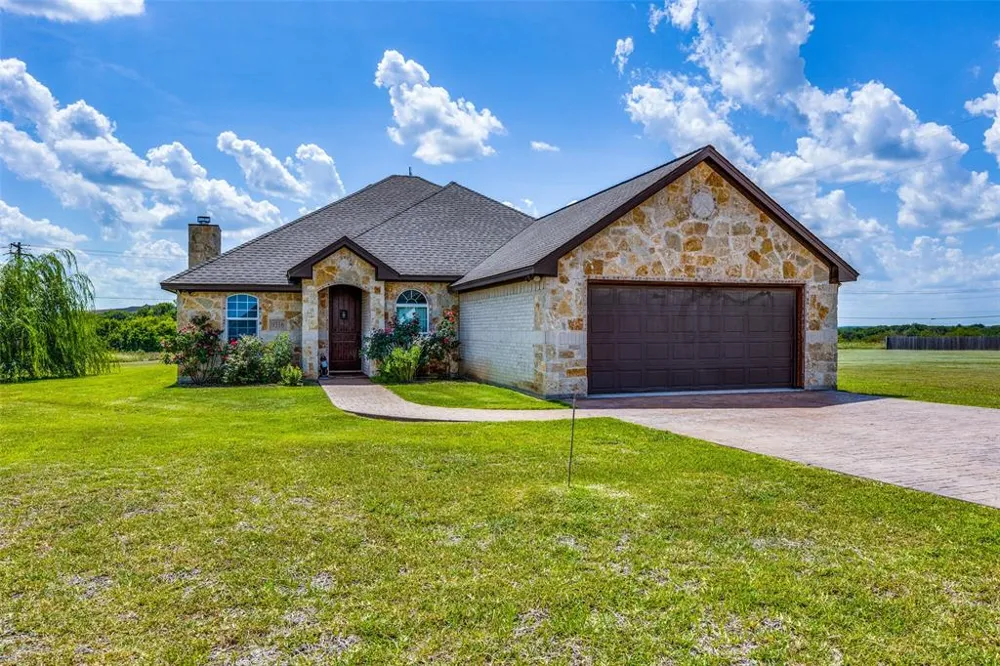 NO HOA, NO WATER BILL, NO CITY TAXES! This beautiful 4 bedroom, or 3 bedroom and an office 2019 rancher is ready for a new owner. Recent wood-look tile floor installed throughout besides bedrooms. Nicely landscaped 1 acre lot with a stamped concrete driveway to elevate curb appeal. Open concept floor plan with kitchen overlooking the bright dining-living area with tall ceilings and stone wood-burning fireplace. Perfect to relax after a long day or to entertain guests. Beautiful and spacious custom kitchen equipped with tons of cabinets and granite counter tops, stainless steel appliances and a large breakfast bar. Split bedrooms set up with huge primary bedroom, jetted tub and walk-in closet. Secondary bedrooms are great size, and one has built in cabinets that would make for a perfect office space. Covered back patio with stone pillars overlooking the big back yard in a country setting. Buyers backed out due to personal reasons, nothing to do with the house.