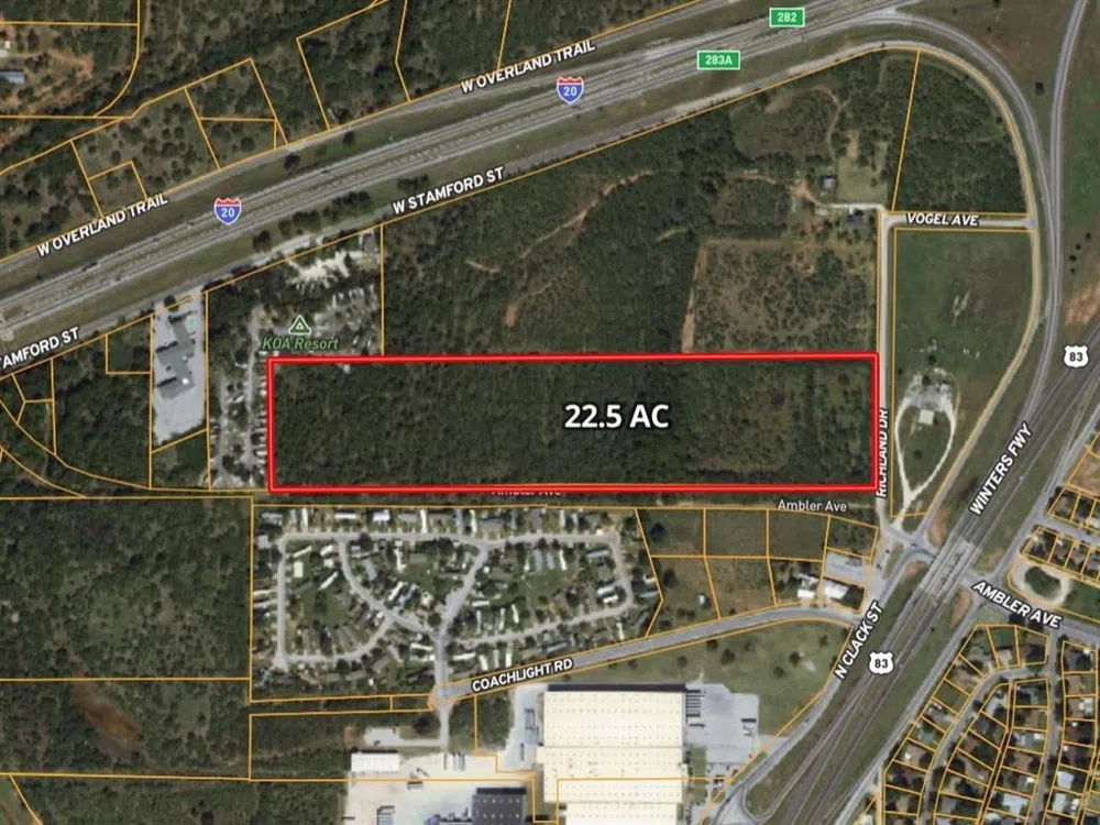 Identified best by assessor parcel number 47582 on taylor-cad.org, this 22.5 acre tract is zoned GC. 1.82 ac in 100-year flood plain; balance of acreage in floodway. Access east end off N Clack on Richland Rd. Northwest corner of property abuts KOA campground. For other properties that are part of this portfolio, go to lots.barnetthill.com.